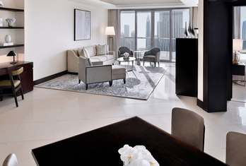 Reflecting the spirit of high living, the Premier Fountain View Rooms provide a panoramic viewpoint of Burj Khalifa and The Dubai Fountain, one of the world’s most fascinating scenes. Nine of these incorporate interconnecting foyers to Premier Fountain View Twin Rooms, while all are graced by the comforts of a king-size bed, vanity and dressing areas, and Nespresso and tea-making facilities.