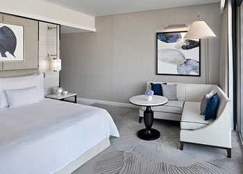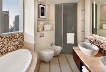 Maximum occupancy: 3 Adults. Or, 2 Adults & 1 Child under 12 years of age. Unwind in comfort in our immaculately appointed Deluxe Rooms. Featuring a king-size bed and built-in closet, they offer views of the glittering skyline or the Business Bay district with its winding waterway.