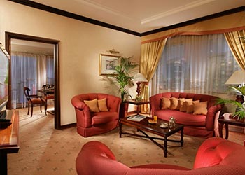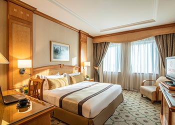 Our Executive Club Rooms are elegantly appointed and situated on the upper three floors of the hotel, offering spectacular views of Dubai. Each spacious hotel room is equipped with either a King bed or twin beds, bathroom with a full-size bathtub, a separate shower, a bidet and a hair dryer. Mineral water is provided daily, as well steady Wi-Fi connection, and complimentary access to recreation facilities and an equipped Business Centre.