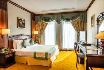 True to the name, our Palace Suite accommodations offer exquisite comfort, generous living space and panoramic views of Dubai Creek and the city. The one-bedroom suites boast an extremely spacious sitting Room for relaxation with comfortable sofas and armchairs plus a private dining or meeting area centered around a table which can accommodate up to six people as well as a bedroom with a King-size bed. Amenities include a beautifully fitted bathroom with a full-size bathtub, a separate shower, a bidet, a hair dryer and bathrobes. Mineral water is provided daily, as well steady Wi-Fi connection, and complimentary access to recreation facilities and an equipped Business Centre.