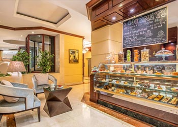 The Gourmet Shop offers a true coffee shop experience with its range of hot and cold beverages, pastries, cakes, croissants and chocolates. Sit back and relax in comfy armchairs, sofas or the traditional Arabic Majlis and take in the atmosphere of our grand lobby.