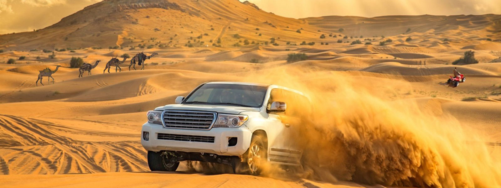 Pick up at the hotel hall at 3.30pm to leave in a 4x4 to the desert. On this excursion you will feel all the excitement of driving over large dunes, enjoying an impressive landscape. At dusk, we will go to the Bedouin camp where we can enjoy a camel ride, we can get tattoos with henna, smoke shisha, dress as Emiratis or even buy a souvenir. Finally, the barbecue dinner will take place while we enjoy a dancer who will delight us with the famous belly dance.