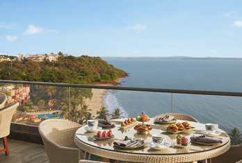 Multiple restaurants serving Goan, Indian, and international cuisines with ocean-facing settings.