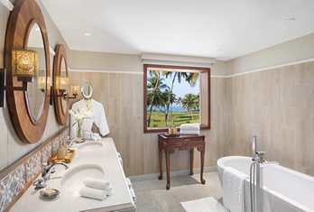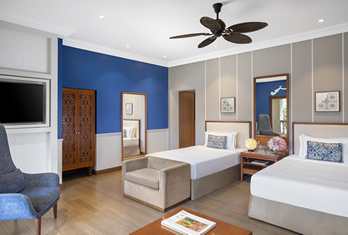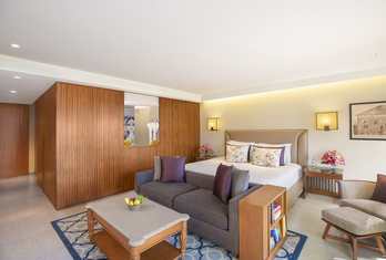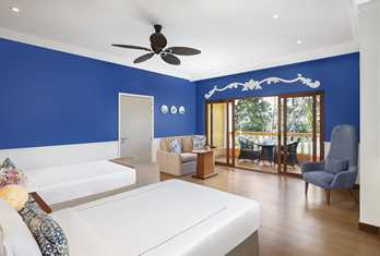 Luxurious rooms, suites, and villas with garden or sea views, featuring refined décor, spacious bathrooms, and private sit-outs for relaxed living.