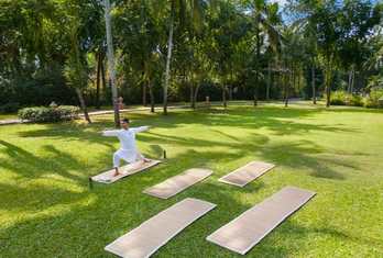 Outdoor swimming pool, wellness spa, fitness centre, on-site golf, yoga sessions, kids’ activities, and leisure sports.