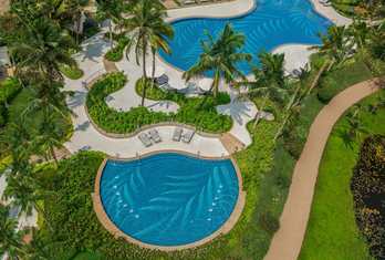 Multiple swimming pools, a luxury spa, fitness centre, on-site golf, kids’ club, beach activities, and wellness experiences.