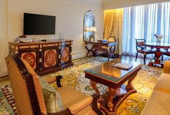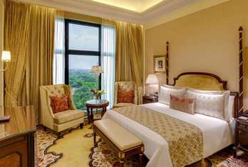The Leela Palace offers a wide range of luxurious rooms and suites (total approx. 254 rooms and suites) with state-of-the-art amenities.