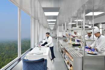 The hotel is well-known for its diverse and acclaimed dining venues that combine global and Indian flavors: