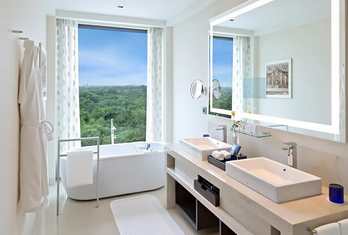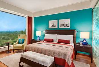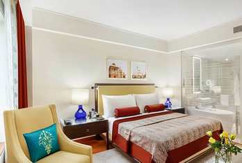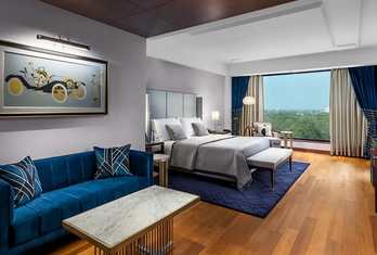 The hotel features around 220 spacious rooms and suites, each designed for comfort, sophistication and natural light. Many rooms offer views of the Delhi Golf Course or Humayun’s Tomb.