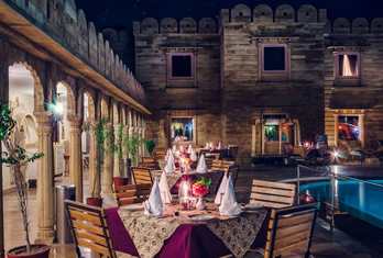 Fort Rajwada, Jaisalmer — a well-established heritage luxury hotel in the desert city of Jaisalmer: