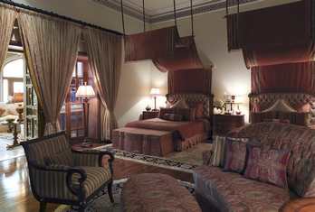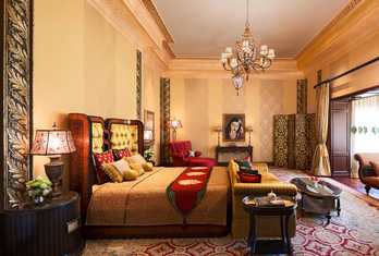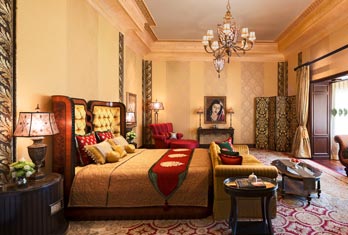 Offers elegantly restored rooms and suites that blend historic charm with modern luxury. Suites often occupy former royal chambers and feature ornate décor and views of the gardens. Room categories typically include Palace Rooms, Historical Suites and Royal Suites (e.g., Suryavanshi Suite, Maharani Suite, Prince’s Suite), each with refined interiors and premium amenities. In-room facilities include air conditioning, free Wi-Fi, minibar, tea/coffee making facilities, safety deposit box and 24-hour room service.