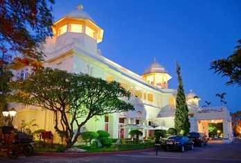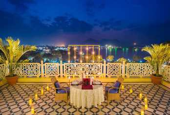 The LaLiT Laxmi Vilas Palace Udaipur is a heritage luxury hotel on a hilltop overlooking Fateh Sagar Lake in Udaipur, Rajasthan, India. It commands panoramic views of the Aravalli Hills, Fateh Sagar Lake and nearby landmarks. The palace is conveniently located ~5 km from Udaipur Railway Station, ~4 km from the city centre and about 27 km from Maharana Pratap (Dabok) Airport.