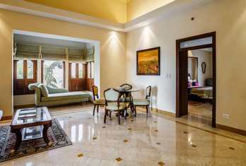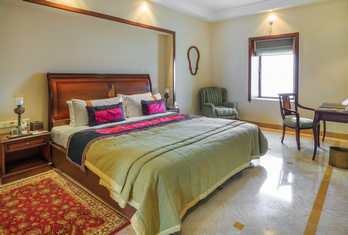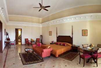 Accommodation at The LaLiT Laxmi Vilas Palace blends heritage elegance with modern amenities: