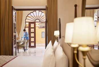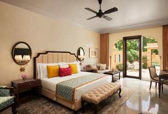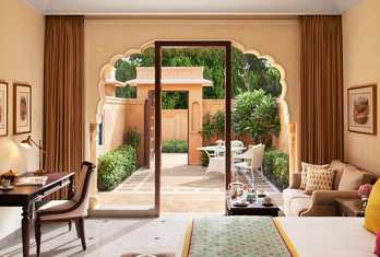 Sawai Man Mahal Jaipur features 51 meticulously designed rooms and suites, each opening onto private courtyards with lush greenery. These accommodations are thoughtfully appointed for comfort and styled to reflect Jaipur’s regal past