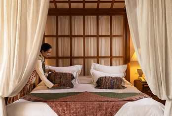 Surya Mahal – All-day dining restaurant (“Sun Palace”) serving a mix of Indian, Western, Mediterranean and Asian cuisine with indoor and courtyard seating. Raj Mahal – Speciality Indian fine-dining venue presenting regional dishes from across India; features indoor and courtyard seating near fireplaces (seasonal). Rajwada Library Bar – Elegant bar lounge with a curated selection of wines, spirits and cocktails, perfect for an aperitif or nightcap. Private dining experiences — available in villa gardens or by the pool upon request. 24-hour in-room dining and special dietary menus on request.